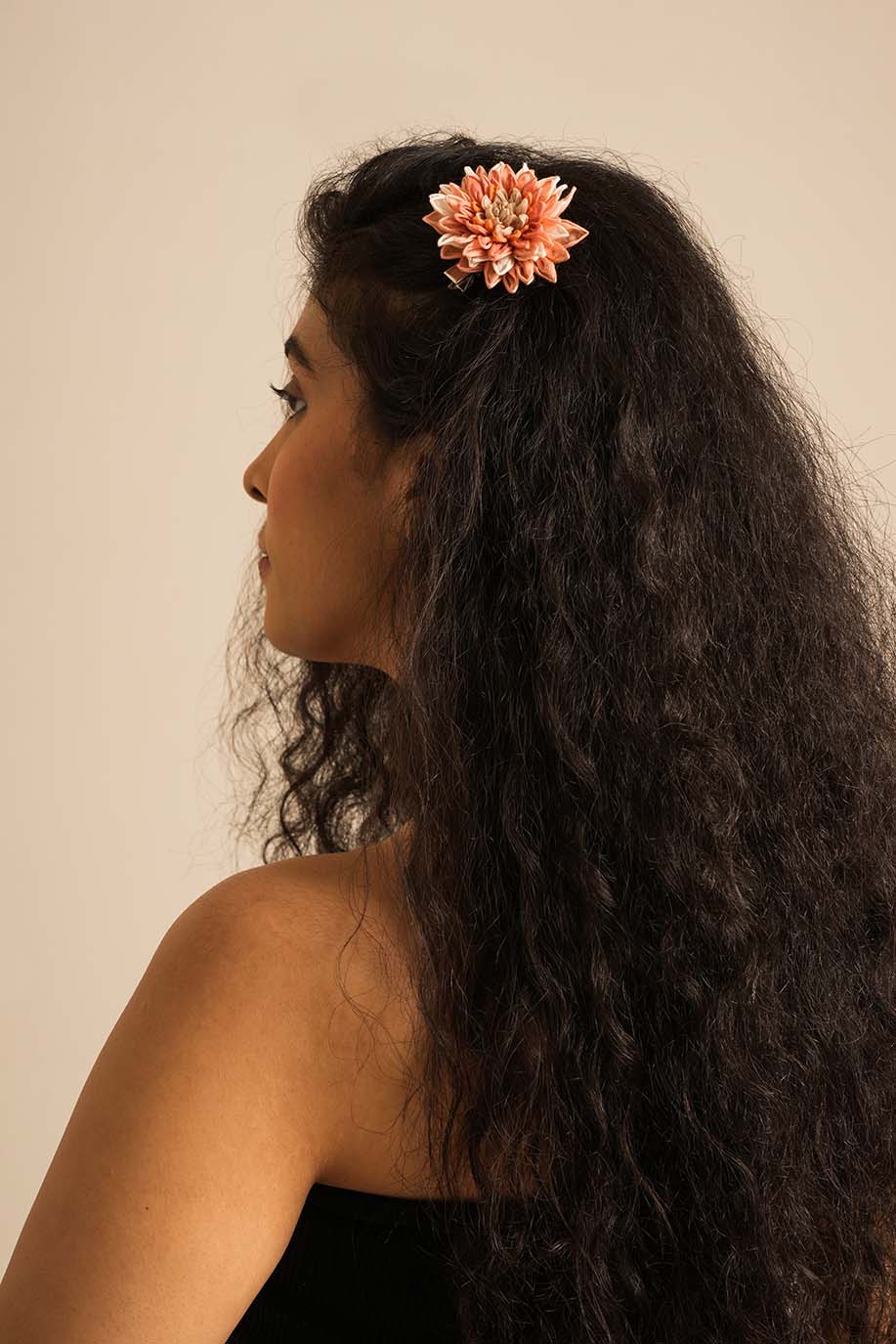 • Material: Woven Chanderi Fabric flower, Glass Beads, Metal Alligator Clip.