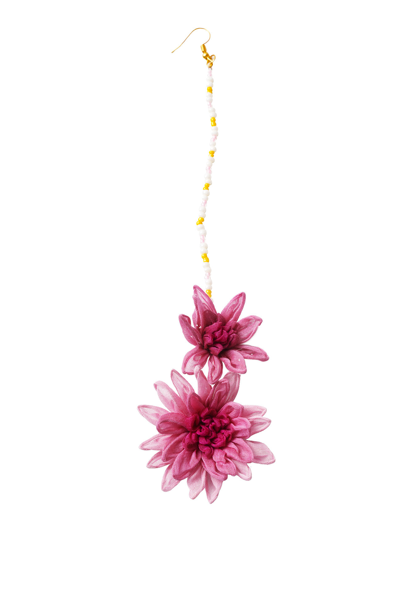 Material: Woven Chenderi Fabric flower, Glass beads, Metal beads, Metal Hook.