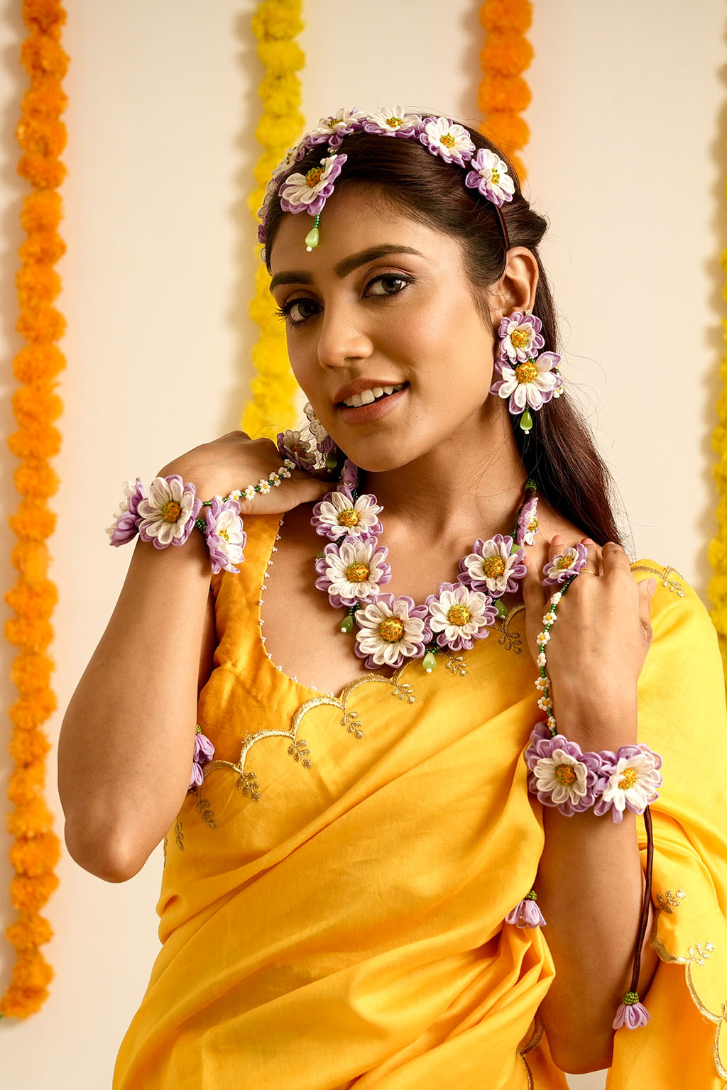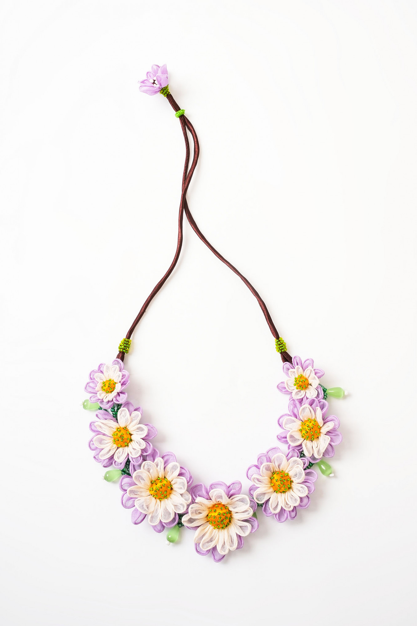 Material: Woven Chenderi Fabric flower, Glass beads.