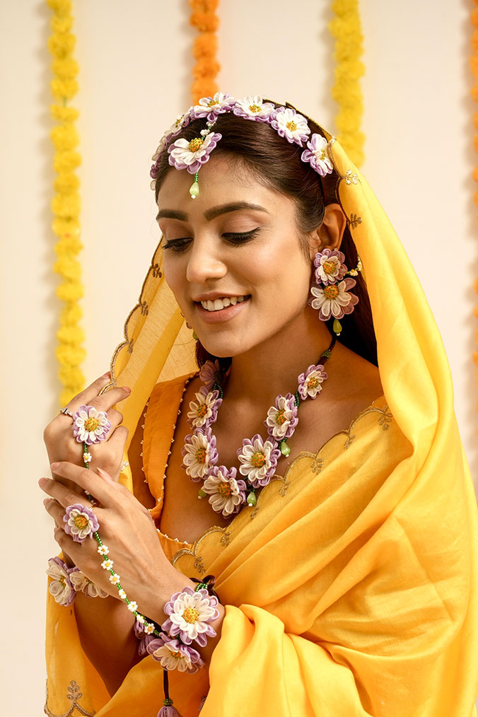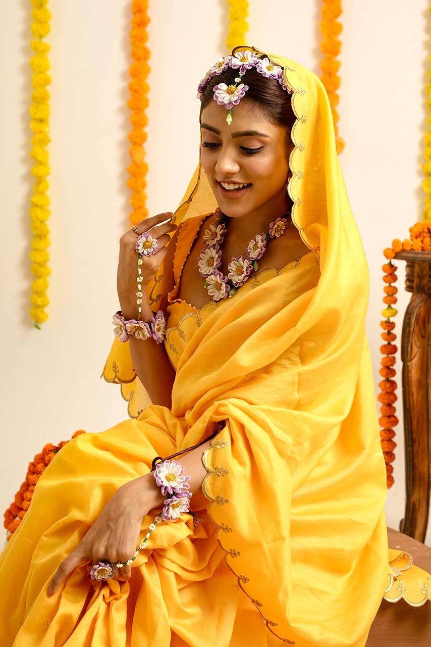 Material: Woven Chenderi Fabric flower, Glass beads.