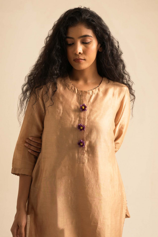 • Material: Woven Cotton Chanderi fabric, Shell Button, Glass Beads.
